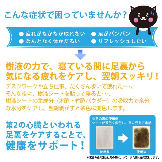 樹液シートの主成分(木酢・竹酢パウダー)の吸収力で余分な水分を吸ってくれますので、翌朝剥がすとシートが茶色に変色します。
