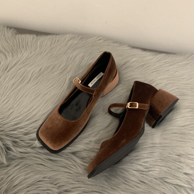 新作 レディース ベロア調 パンプス スタイルアップ ストラップ 6cm 美脚 脚長
