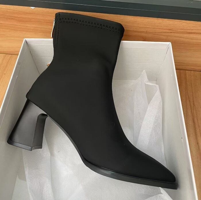 2024秋冬 ブーツ 靴 ショートブーツ 裏起毛 黒 緑 スタイルアップ チャンキーヒール 脚長