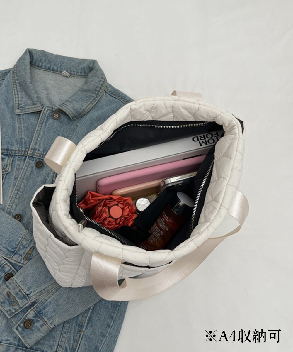 中綿入りキルティング素材を使用し、ふわふわとした膨らみのある質感が魅力の新作トートバッグ。