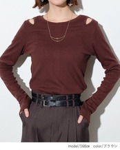 前後2WAYでお使いいただけるカットアウトデザインのヘルシーな印象のリブトップス。伸縮性のよい落ち感の良いリブ生地でご用意しました。ショルダースリットデザインやフロントボタンデザインが大人っぽく、体に沿う程よいサイズ感のシルエットが女性らしさを演出してくれます。クルーネックでベーシックなデザインなのでお手持ちのアイテムとも合わせやすい1枚です。【素材】ポリエステル70%綿25%ポリウレタン5%【裏地】なし【透け感】アイボリーややあり【伸縮性】あり【原産国】中国■サイズ着丈:58肩幅:32身幅:84裾幅:84袖丈:63※身幅、ウエスト、ヒップ、裾幅、袖口は1周のサイズです。◆注意事項: 撮影時のライティングや撮影場所により実際の商品と色味が異なって見える場合がございます。※生地の特性上、標記サイズより数センチのズレが生じる場合がございます。2024/AW/トップス/リブ/レディース/リブトップス/カットソー/インナー/レイヤード/オープンデザイン