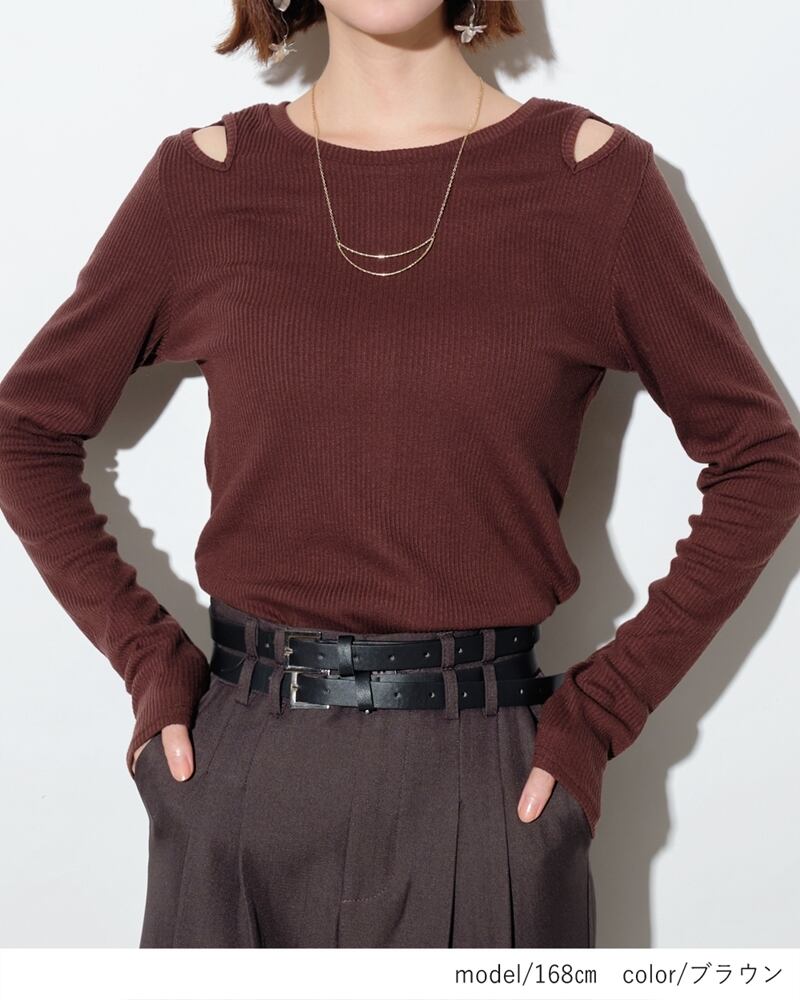 【2024新作商品♪】前後2WAYショルダースリットリブトップス