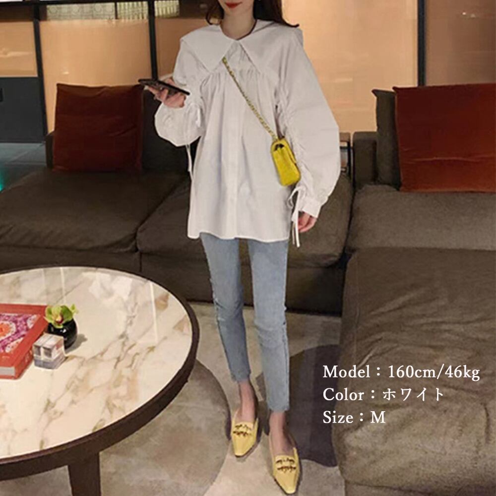 セーラーカラー 大人 チュニックシャツ ドローストリング ボリュームスリーブ ロングブラウス 長袖 海軍風 服 きれいめ
