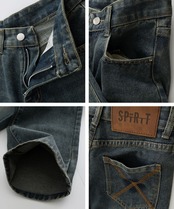 カジュアルジーンズ/ユーズド加工デニム/体型カバー ズボン