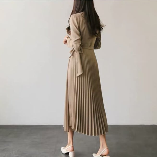 秋 人気新作 長袖ワンピース レディース プリーツ 春 おしゃれ 可愛い ロング丈 マキシ丈 ロングワンピース