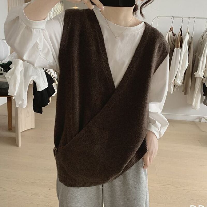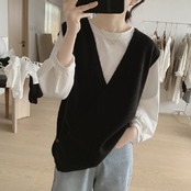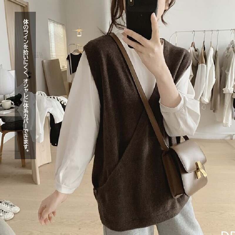 幅広コーデを楽しめる大きめVネック ニットベスト