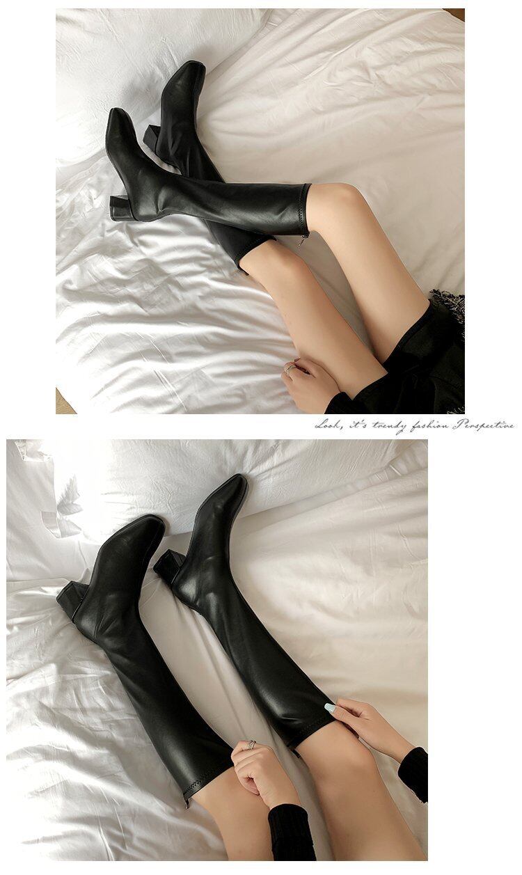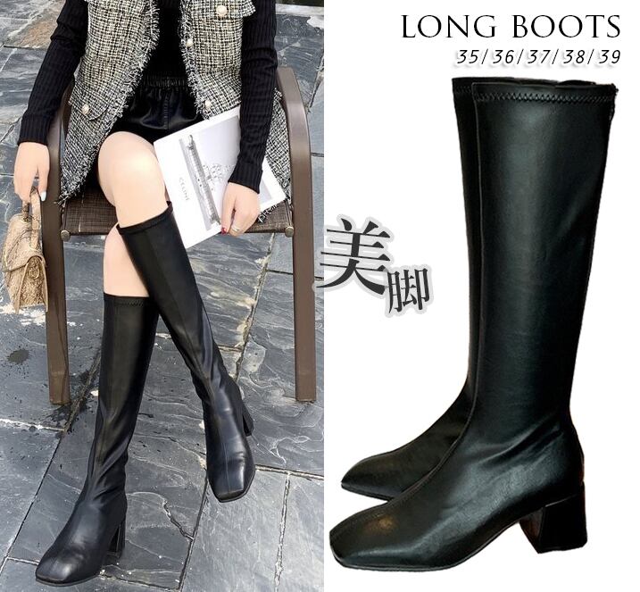 レディース ロングブーツ boots スクエアトゥ 美脚 ブーツ ミドルーヒール デート