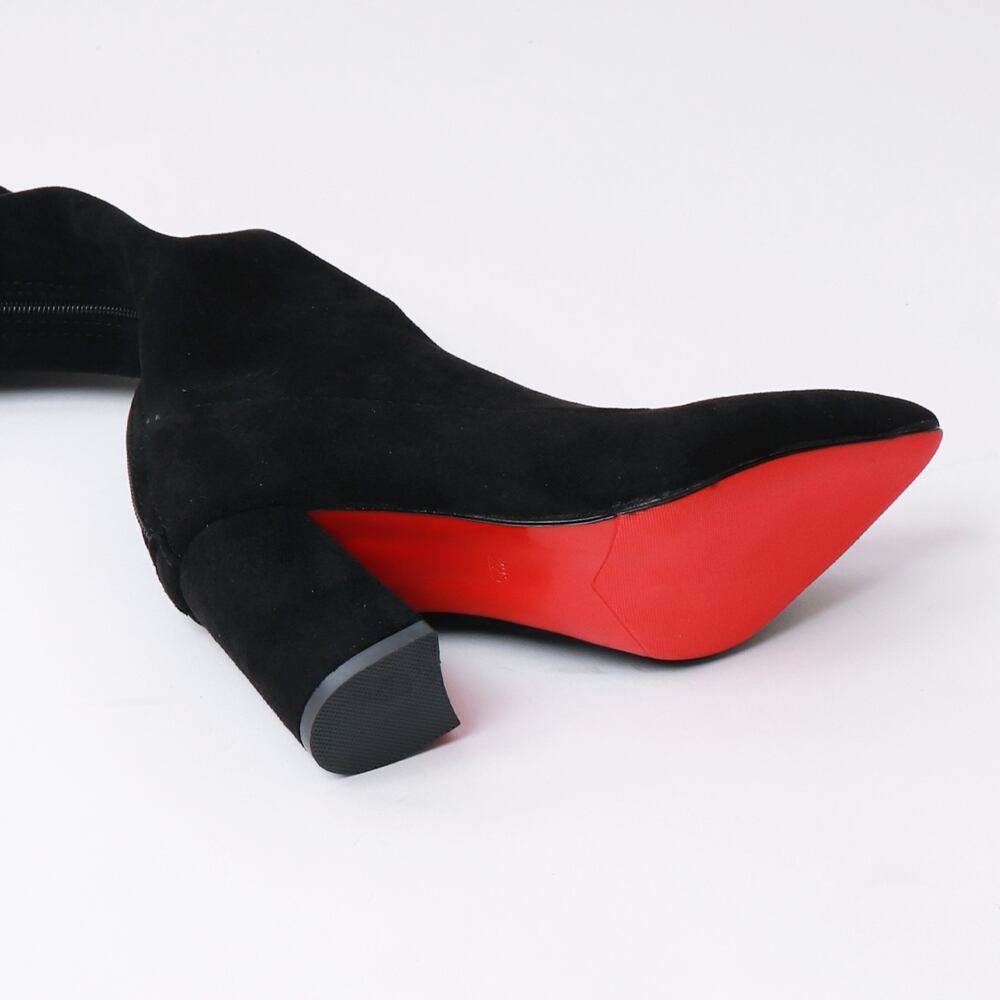 太ヒールブーツ大人 韓国靴 スエード調 ジョッキーブーツ
