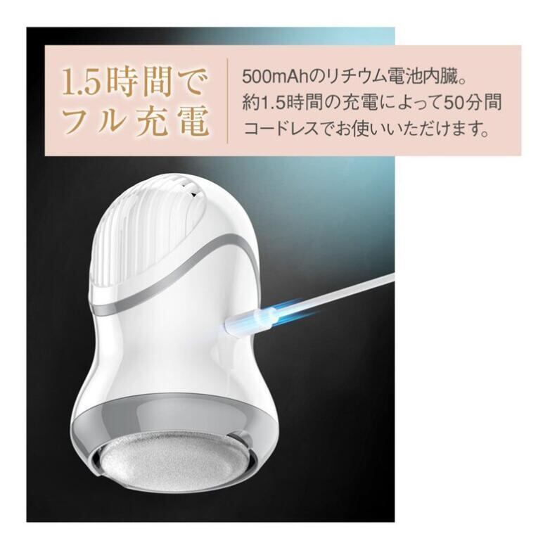 吸引式 電動 かかと ケア USB充電 3種類ヘッド 角質 ケア 角質取り シンプル かかと磨き コードレス