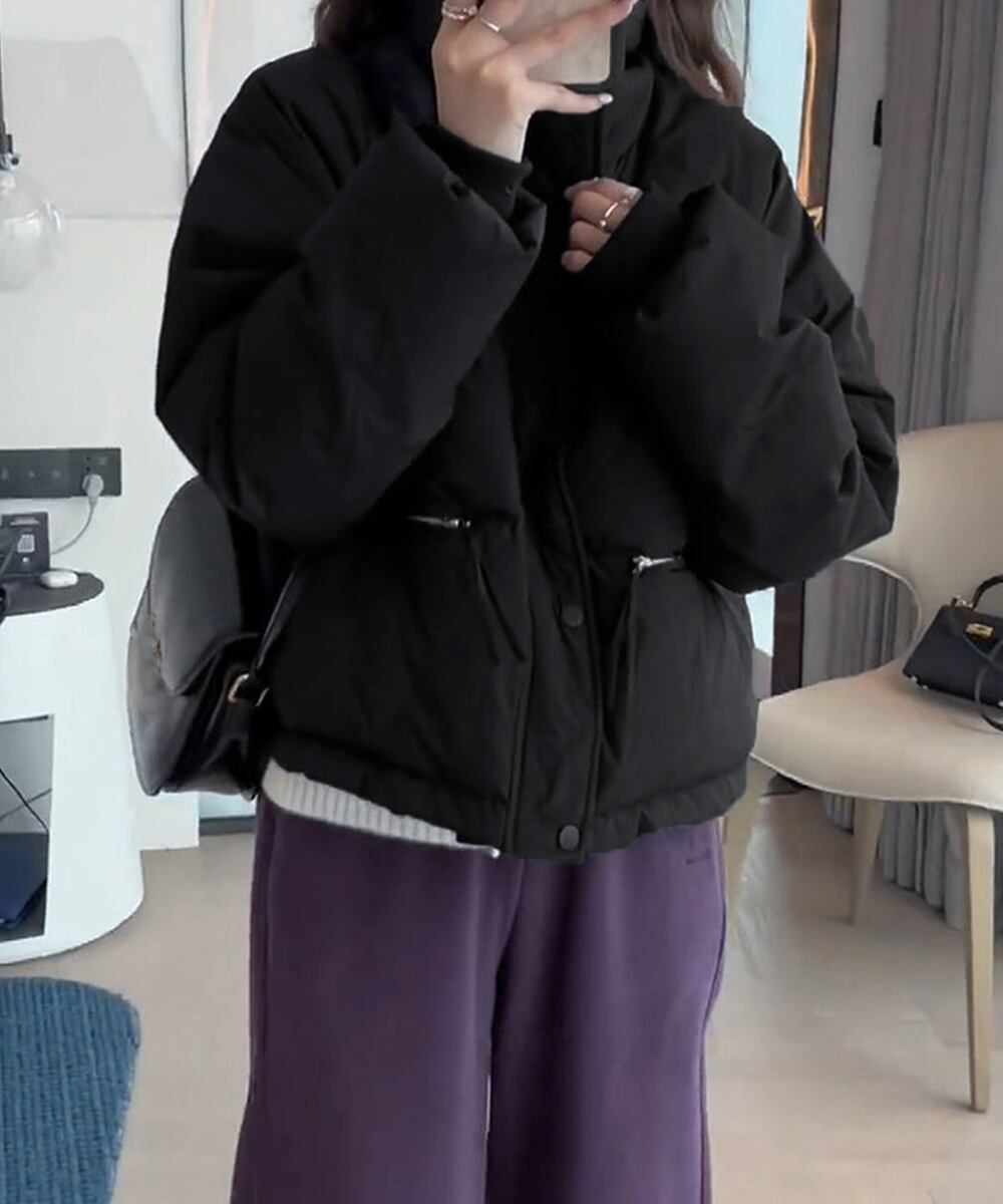 首元をしっかりと包み込むスタンドネックデザインが、防寒性を高めつつおしゃれな印象を演出