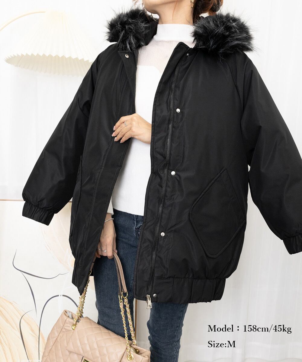 たっぷりと空気を含んだ中綿を使用した、真冬に欠かせないフェイクダウンコート